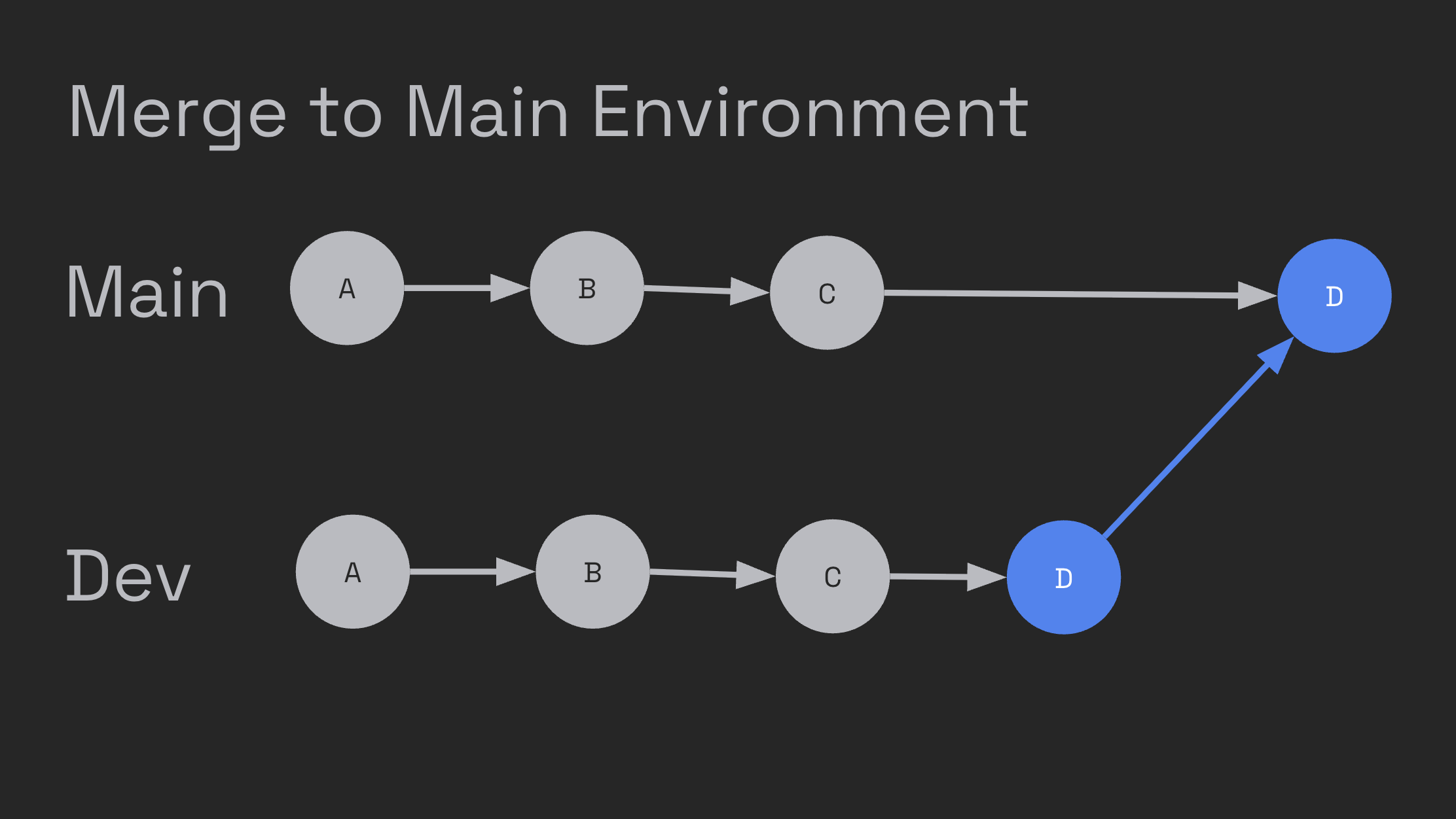產品手冊Odin | Asgard Studio開始使用環境介紹環境介紹環境環境切換提供了用戶可以依據專案不同階段的進展或是迭代的需求,切換至不同環境,以進行各種情境測試與發佈的同時,不會影響到正式環境的運作。注意目前僅能從其他環境合併至 main 環境,無法從 main 推到其他環境。