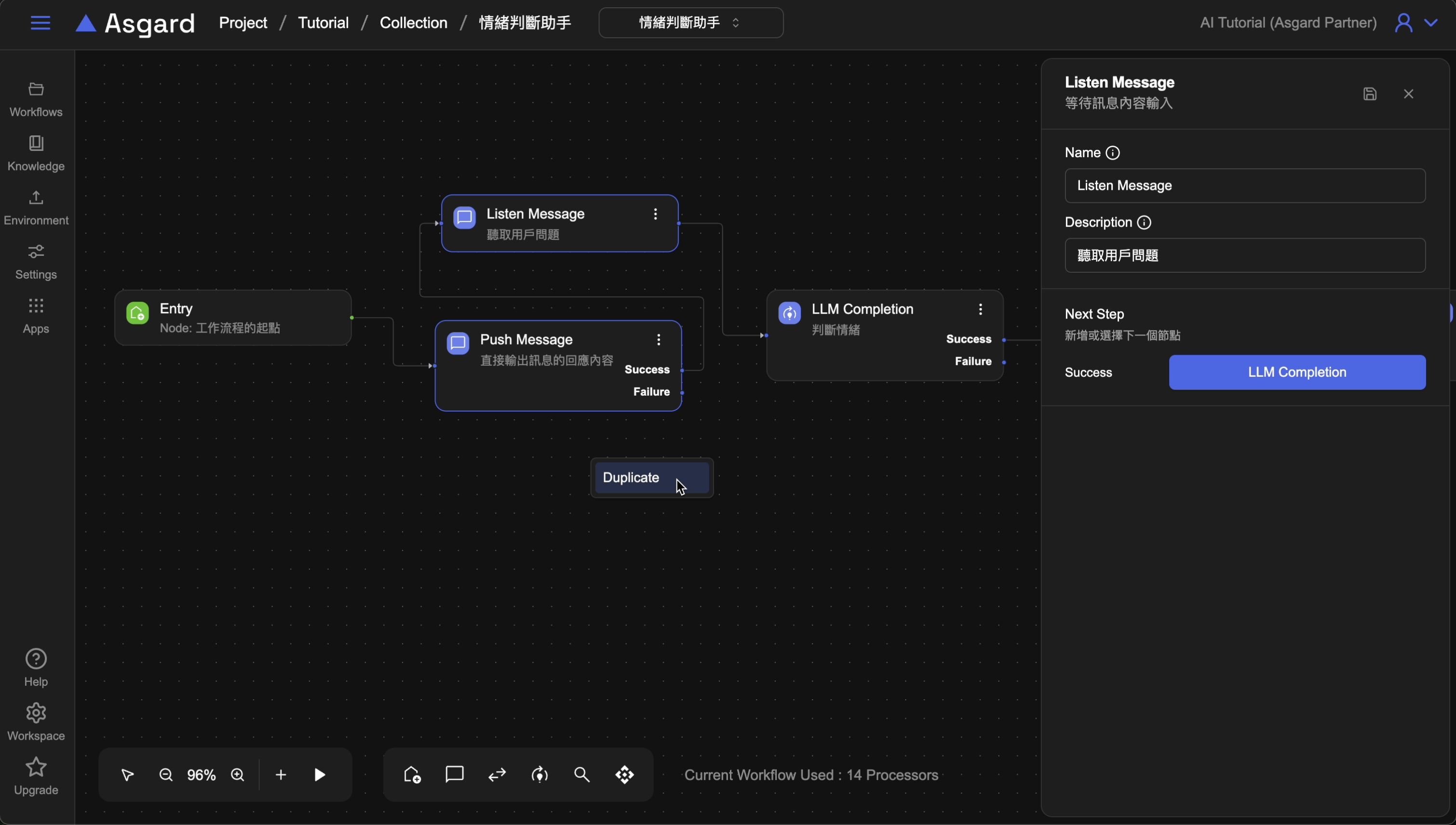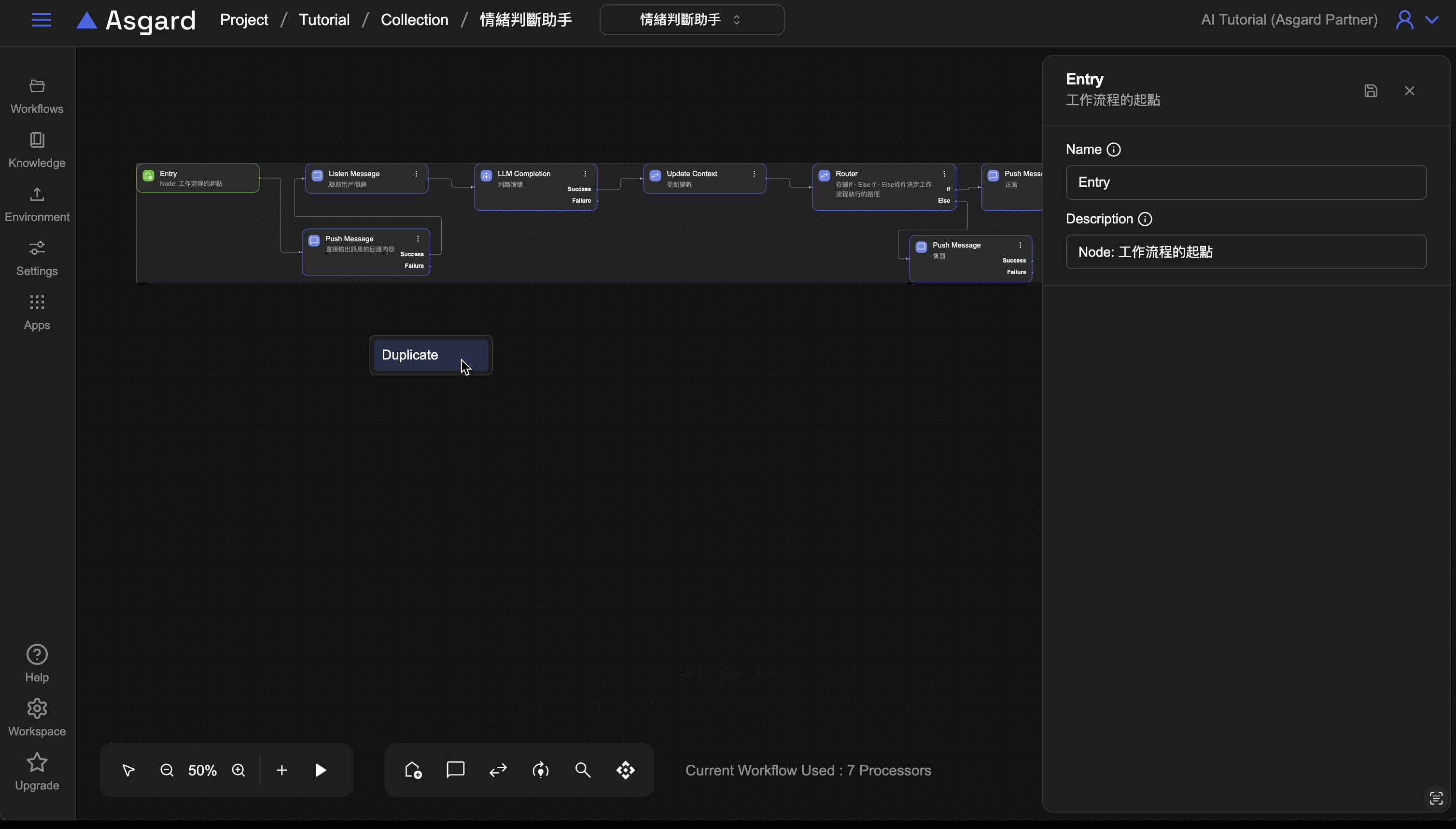 您也可以使用快捷鍵 Ctrl+C, Ctrl+V 來複製處理節點。