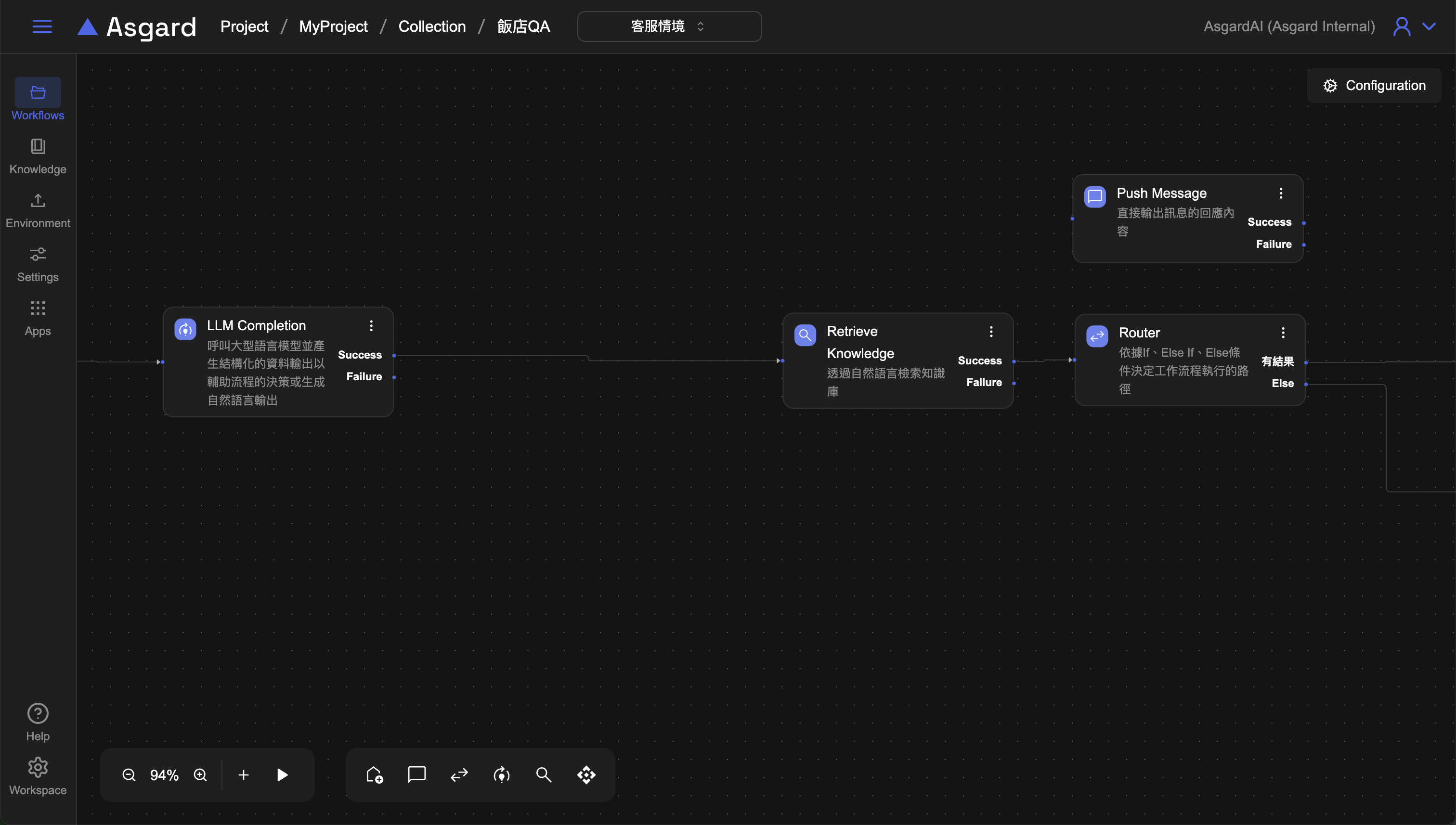 刪除上一章節第五步的 Push Message 並加上 Router 來判斷是否有 Retrieve Knowledge 的結果。
