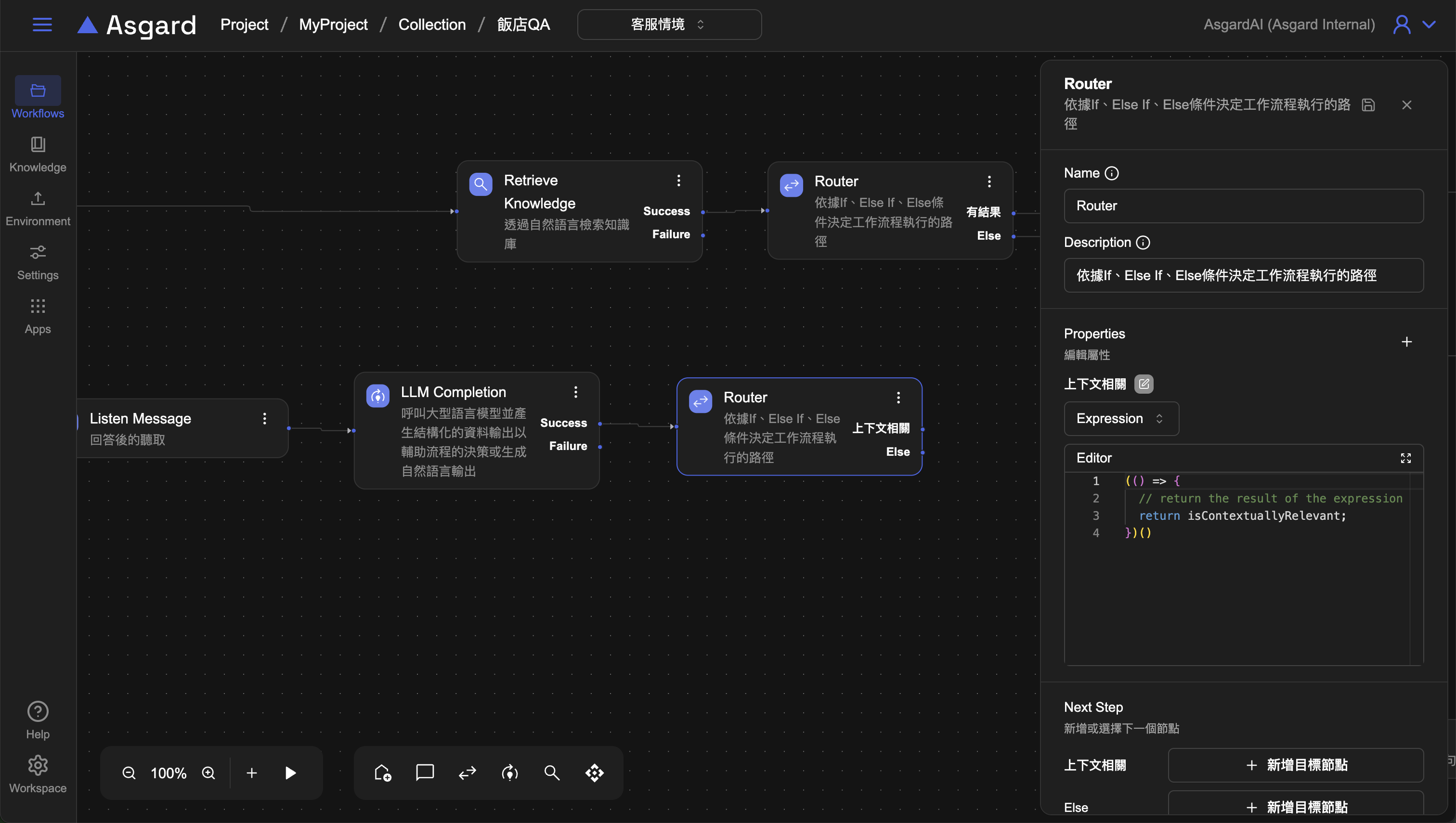 Router 新增一個 Router 依據 If, Else 等條件來決定工作流程執行的路徑。