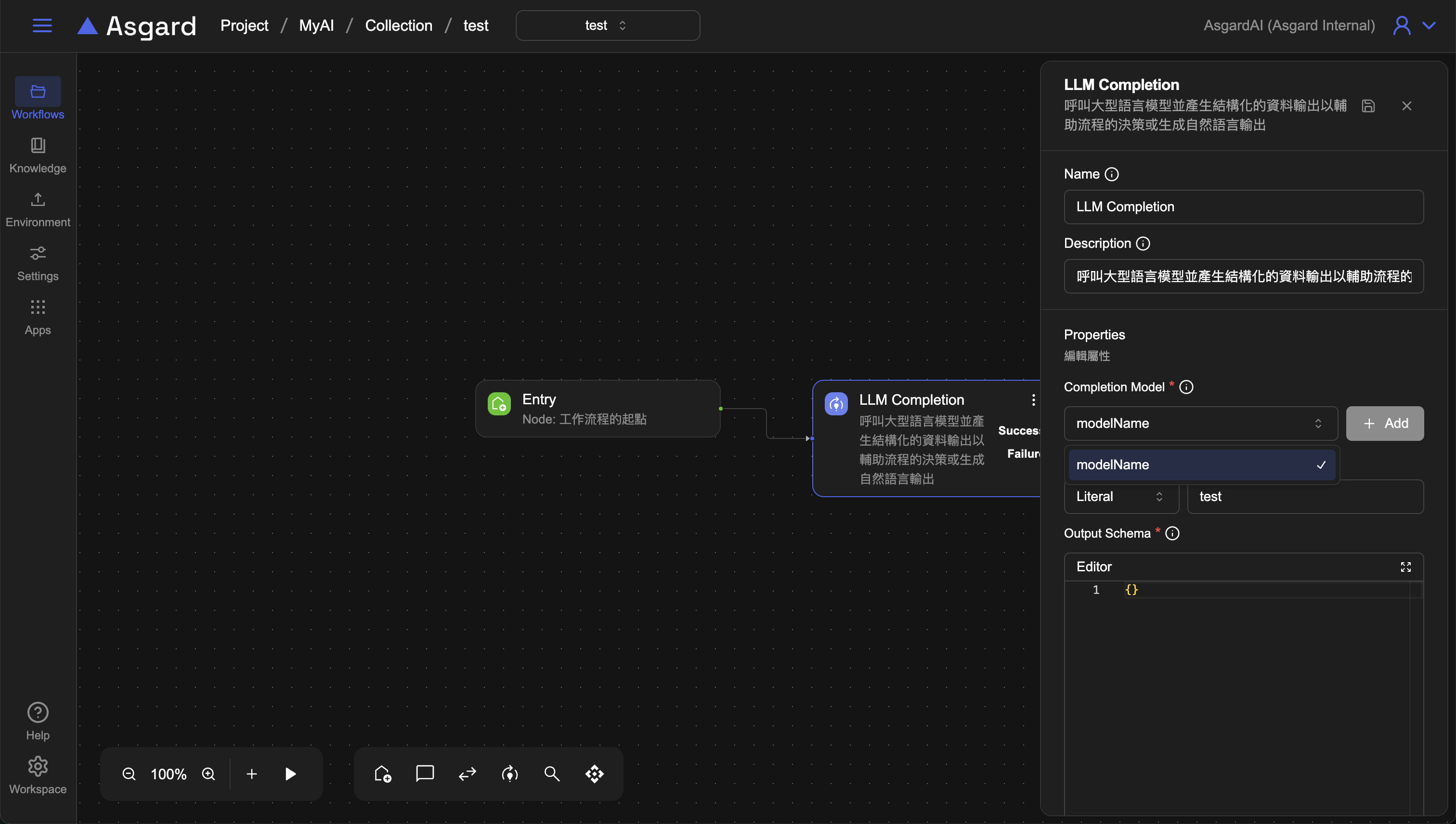 新增的 Completion Model 可以在對應的 LLM Completion Processor 下拉式選單裡選擇,若未先設定的話,也可以從 Processor 新增 model。