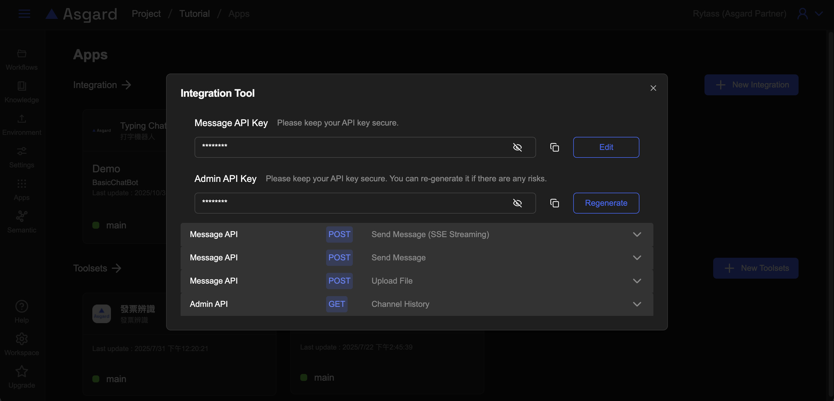 - 檢視整合資訊 按需求複製對應的 API 使用。