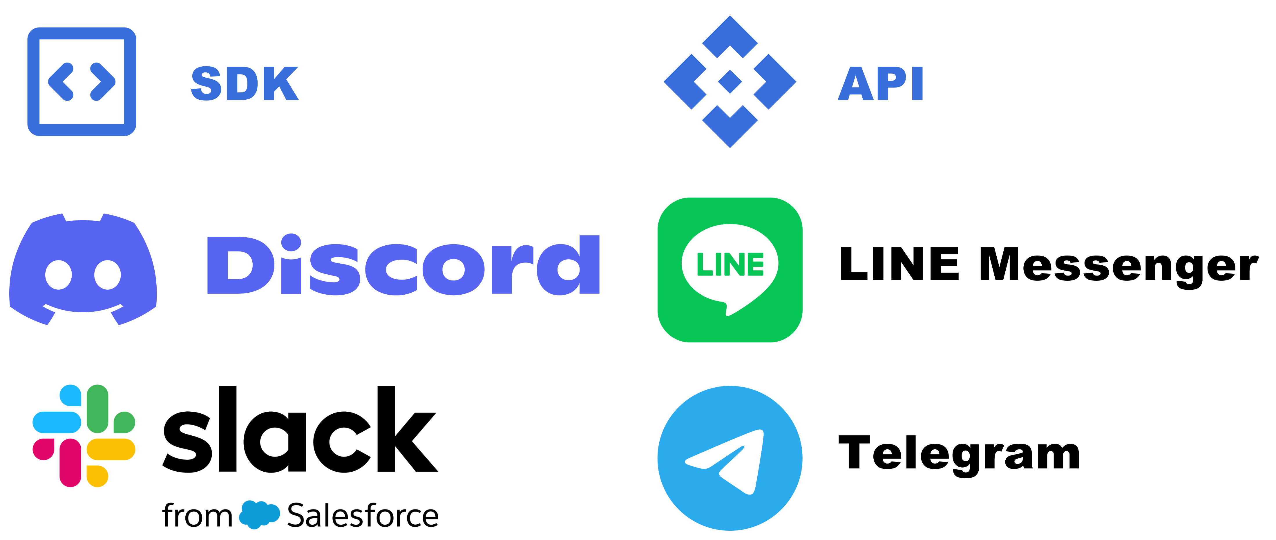 • 與 Line、Slack、Telegram、Discord 等即時通訊軟體整合