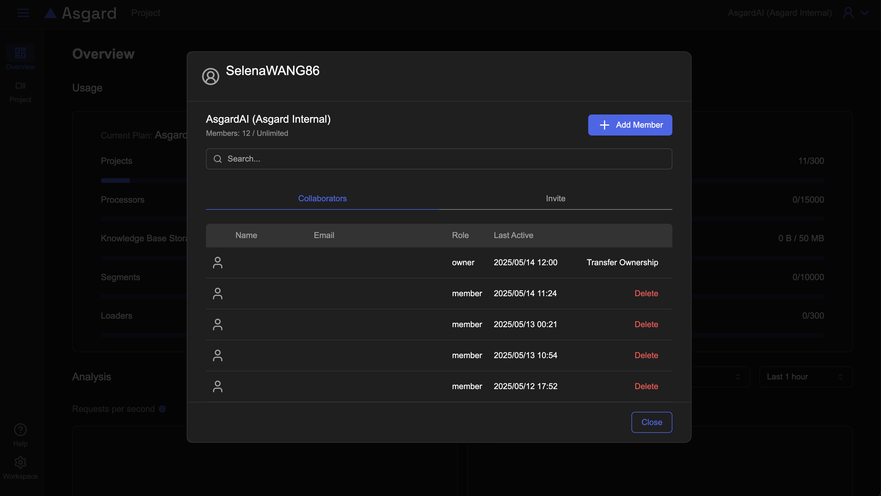 點擊Add Member並輸入email即可完成邀請。