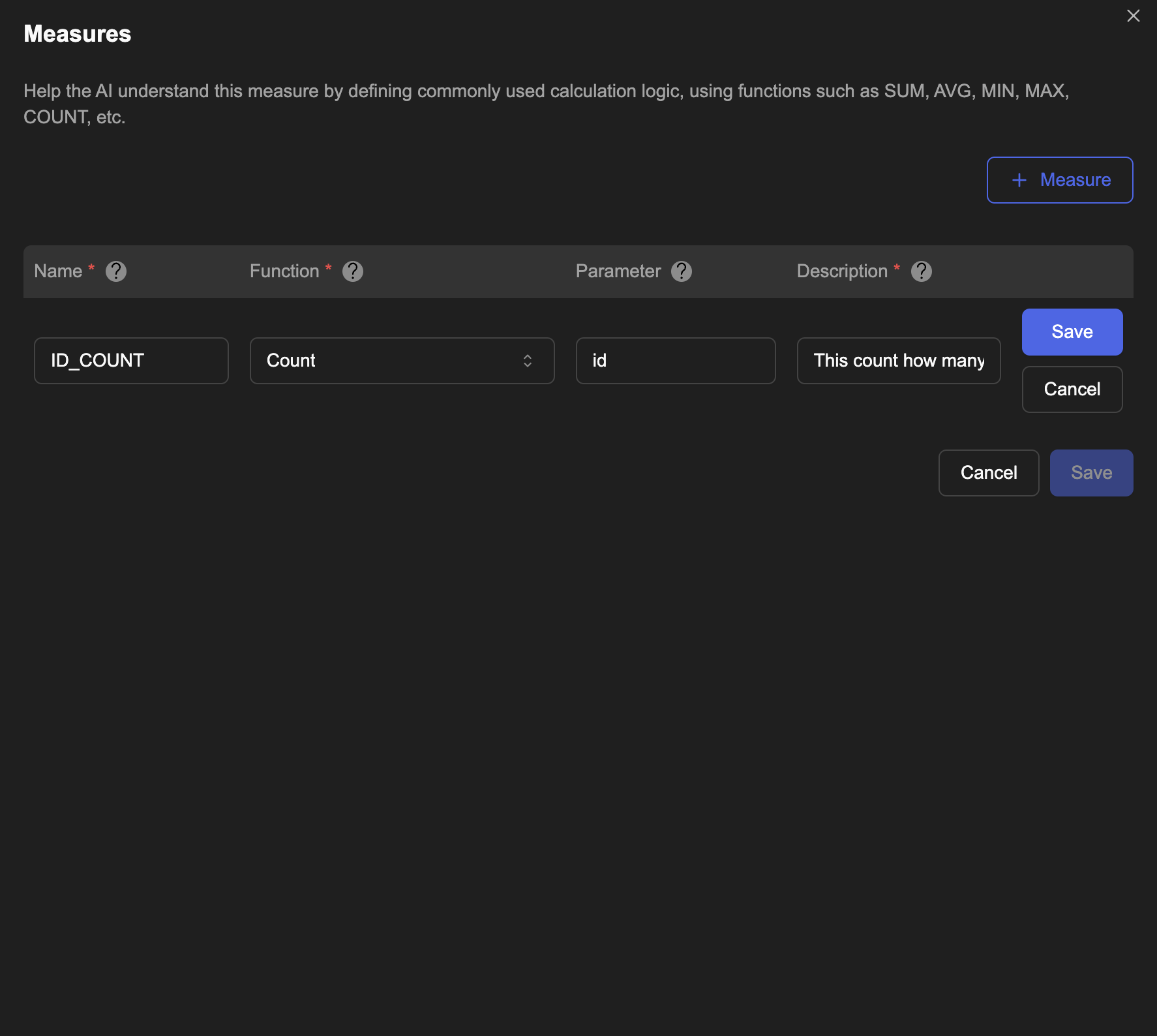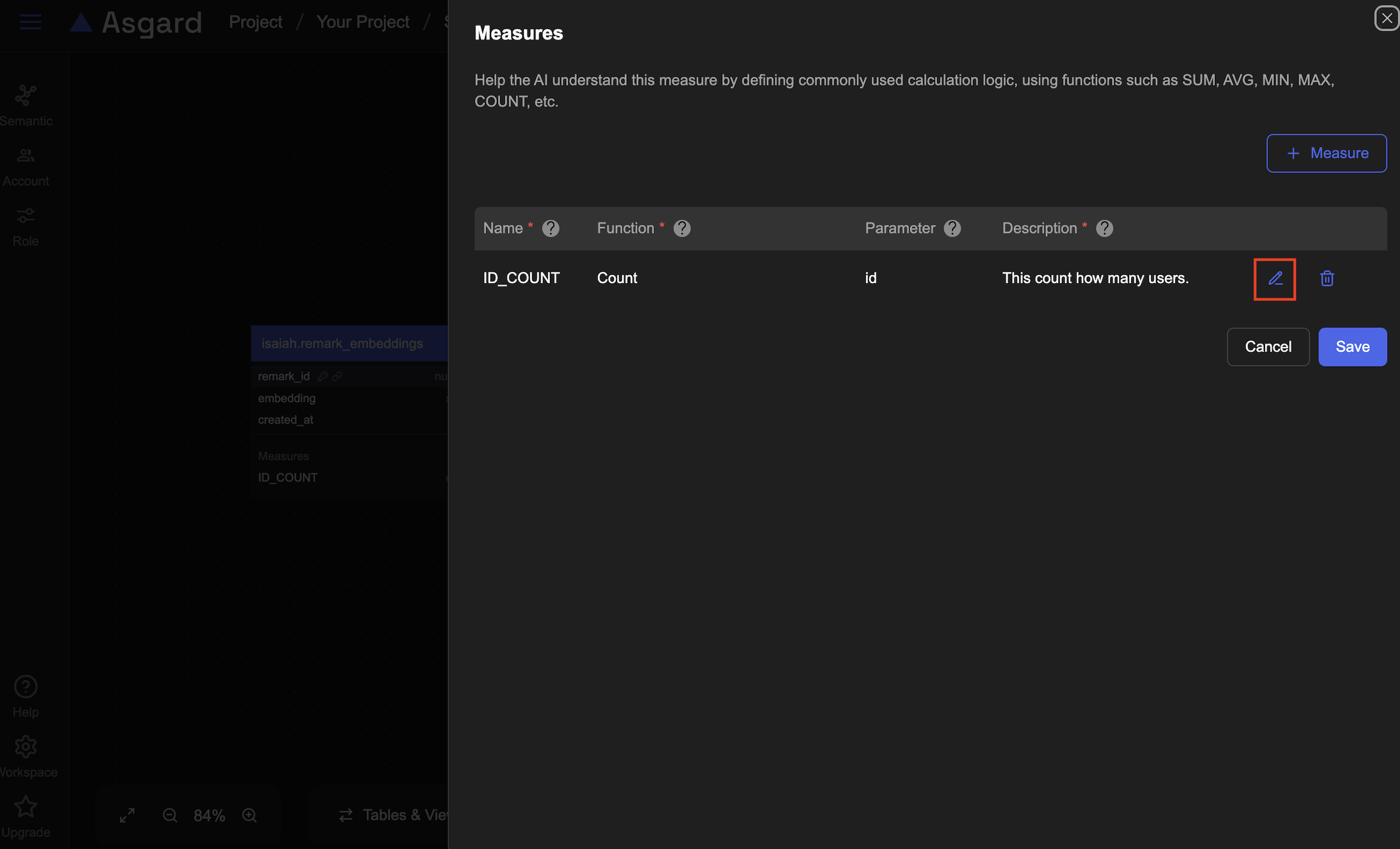 選擇想要調整的 Measure 進行編輯,內容與新增功能相同。